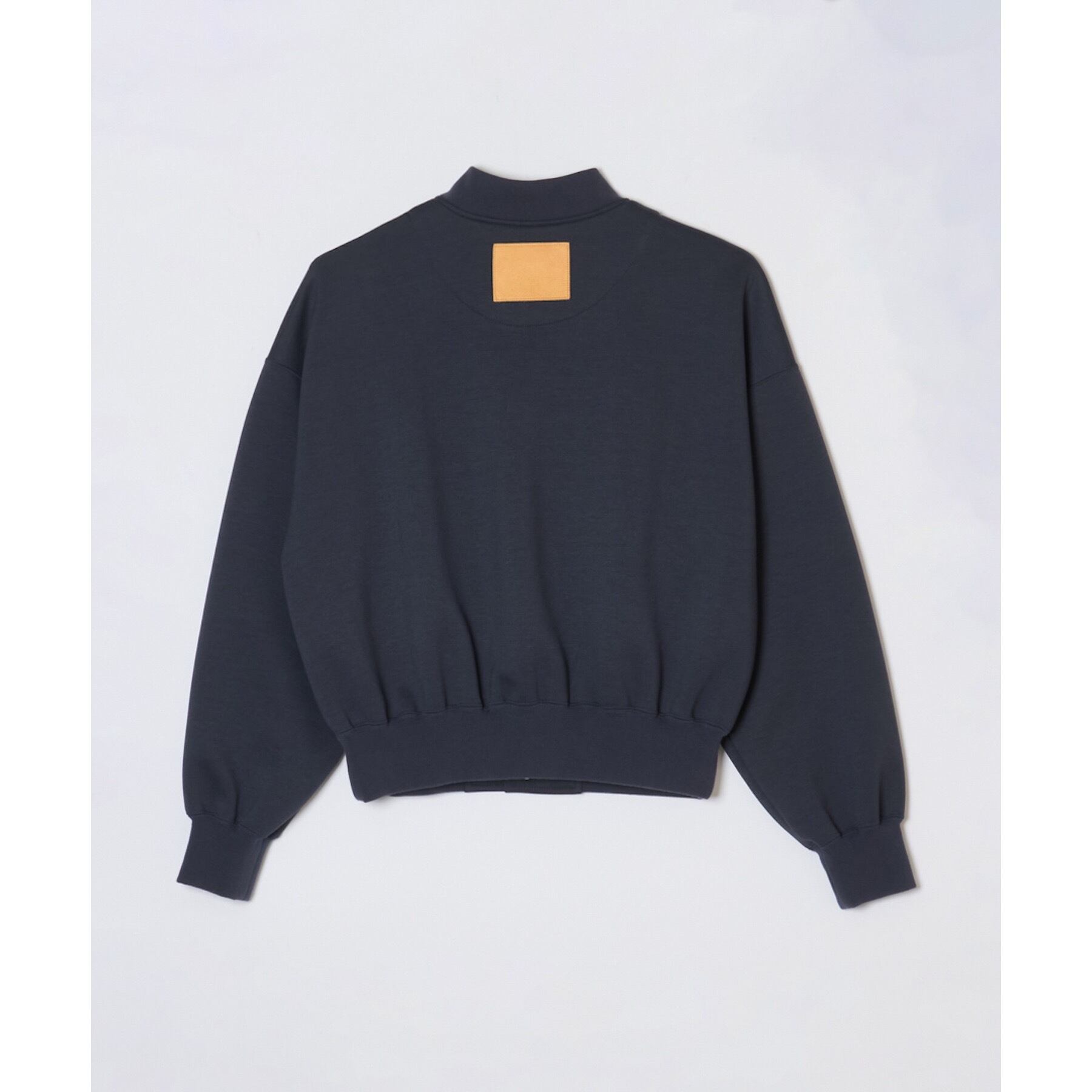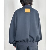 さらっとした肌触りのスウェットブルゾン。フーディーが苦手な方や、季節の狭間の羽織ものをお探しの方にピッタリの軽アウターになります。バックネック部分には「WHERELESS」特有の革パッチが付いており、シンプルでありながらもデザイン性を備えたスウェットアイテムになります。こちらの革パッチはウォッシャブルなので気兼ねなく洗濯でき、徐々にヴィンテージのような味が出てきます。ドットボタンとダブルジップ仕様でアレンジ自在。同素材のパンツと合わせてセットアップで着用していただくのもお勧めです。センターポケットあり。オーバーサイジング。