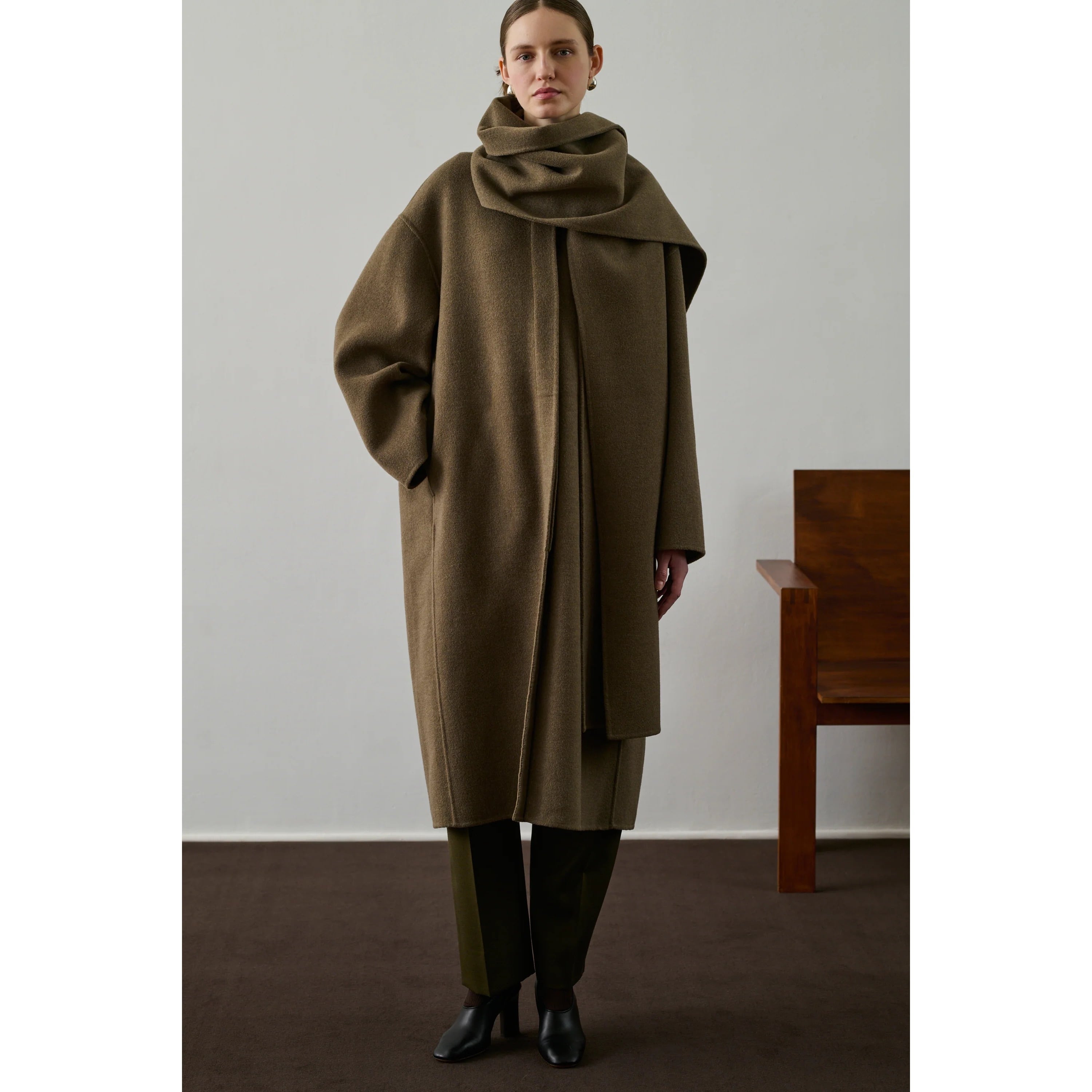 - Large integrated foulard, detachable with buttons