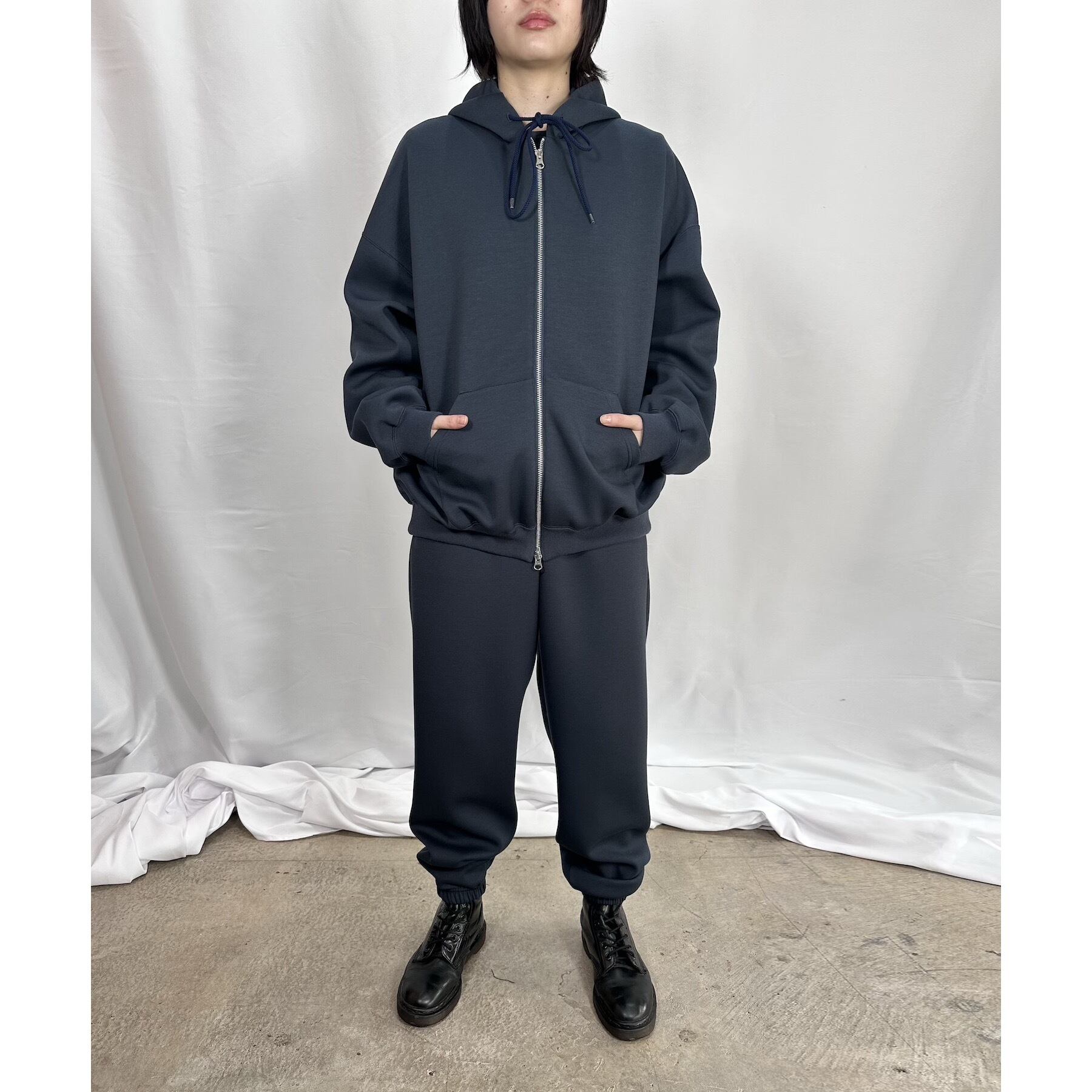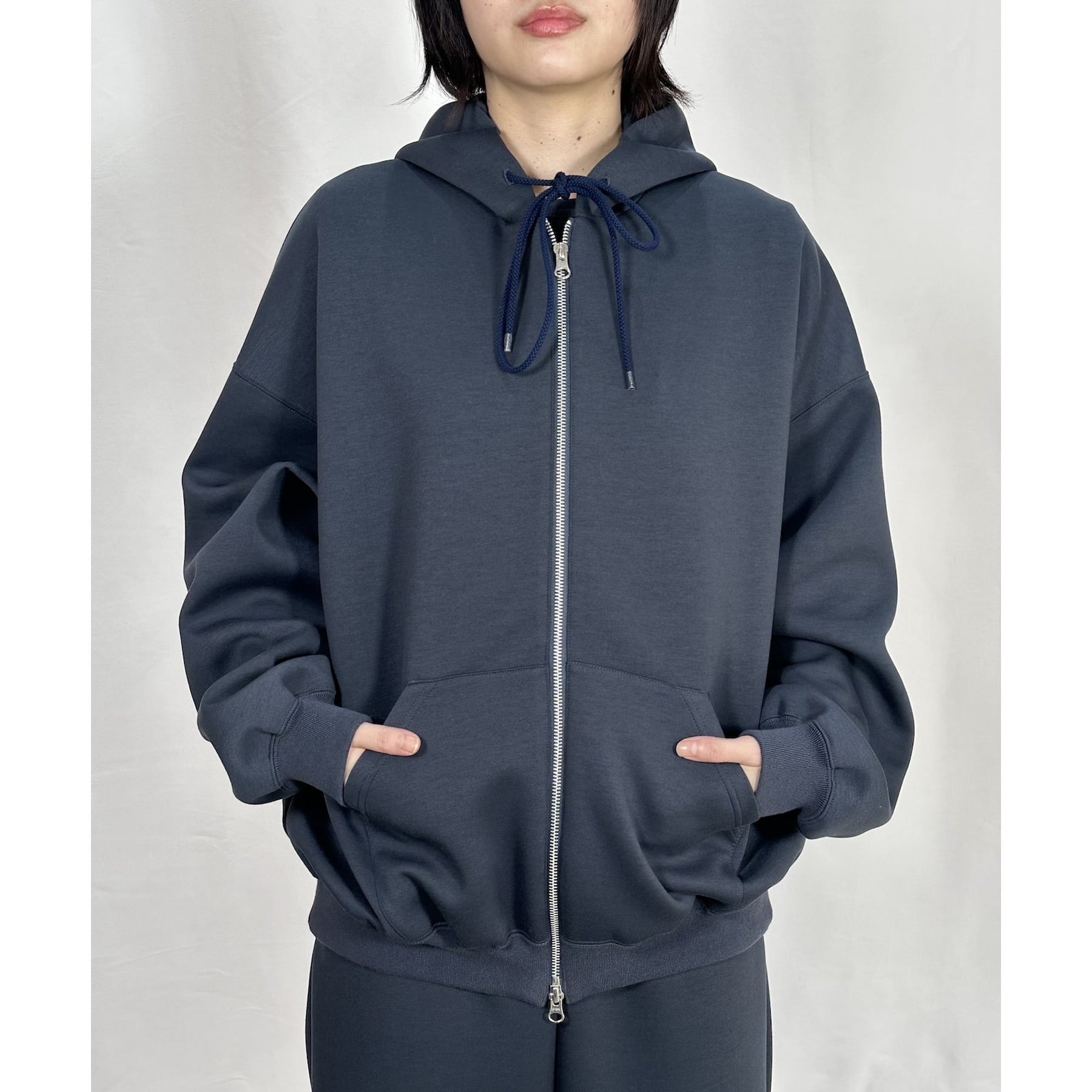 さらっとした肌触りのスウェットフーディー。バックネック部分には「WHERELESS」特有の革パッチが付いており、シンプルでありながらもデザイン性を備えたスウェットアイテムになります。こちらの革パッチはウォッシャブルなので気兼ねなく洗濯でき、徐々にヴィンテージのような味が出てきます。男性でもゆとりのあるワンサイズ展開になりますが、女性ですとオーバーサイズで他にはないボリューム感になりつつ裾と袖口のリブがしっかり締めてくれます。ダブルジップ仕様でアレンジ自在。同素材のパンツと合わせてセットアップで着用していただくのもお勧めです。センターポケットあり。オーバーサイジング。