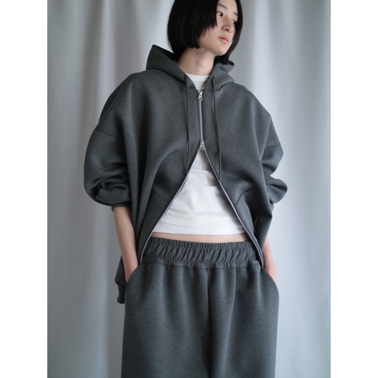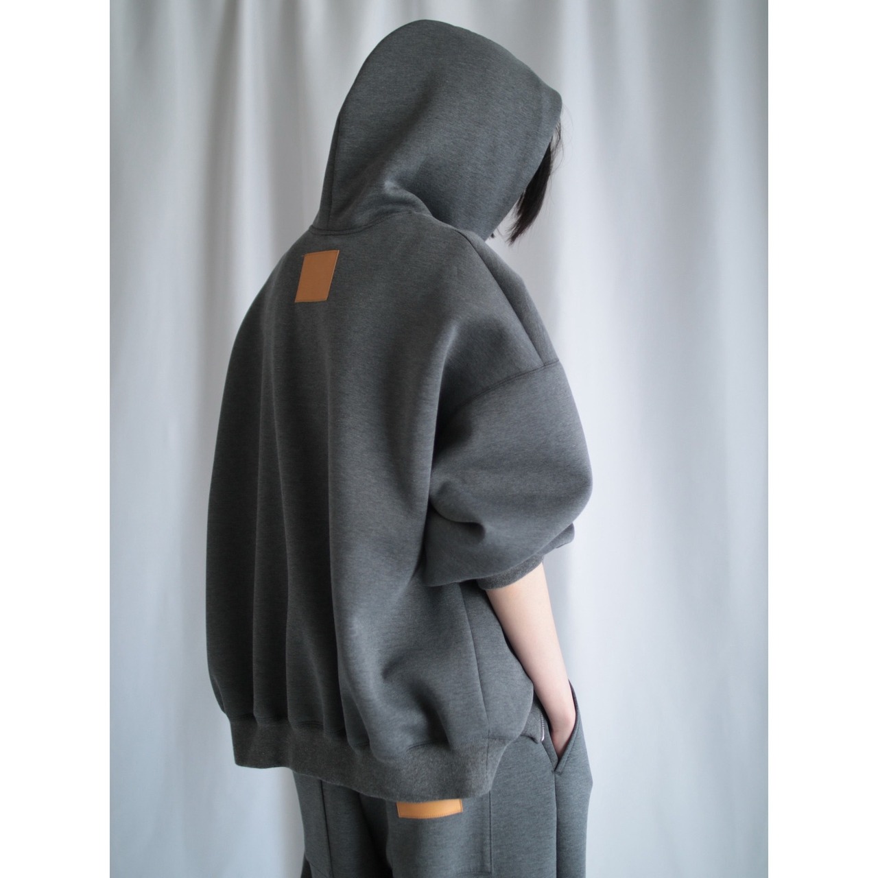 さらっとした肌触りのスウェットフーディー。バックネック部分には「WHERELESS」特有の革パッチが付いており、シンプルでありながらもデザイン性を備えたスウェットアイテムになります。こちらの革パッチはウォッシャブルなので気兼ねなく洗濯でき、徐々にヴィンテージのような味が出てきます。男性でもゆとりのあるワンサイズ展開になりますが、女性ですとオーバーサイズで他にはないボリューム感になりつつ裾と袖口のリブがしっかり締めてくれます。ダブルジップ仕様でアレンジ自在。同素材のパンツと合わせてセットアップで着用していただくのもお勧めです。センターポケットあり。オーバーサイジング。