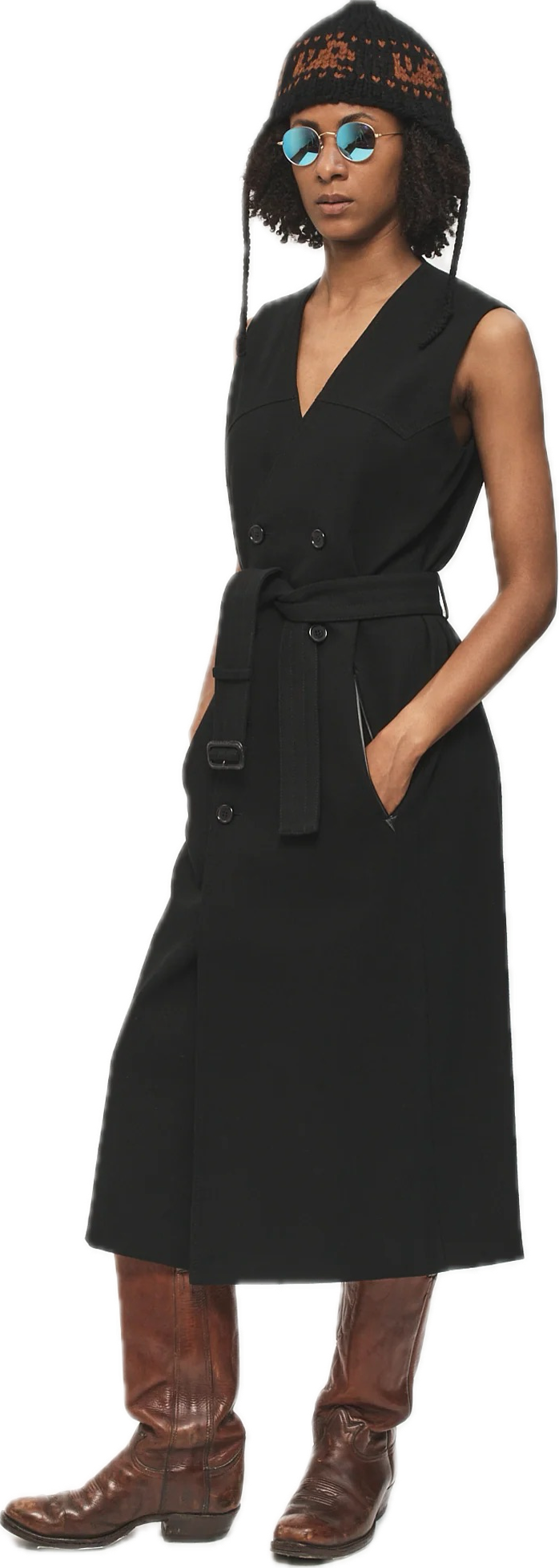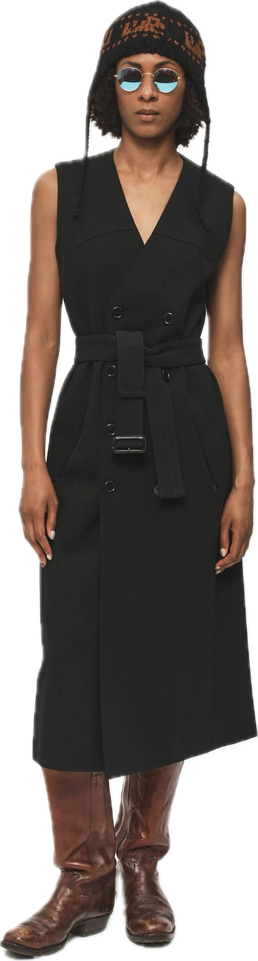 コットンとシルク混紡素材を使用したダブルブレスト仕様のベルト付きジレドレス