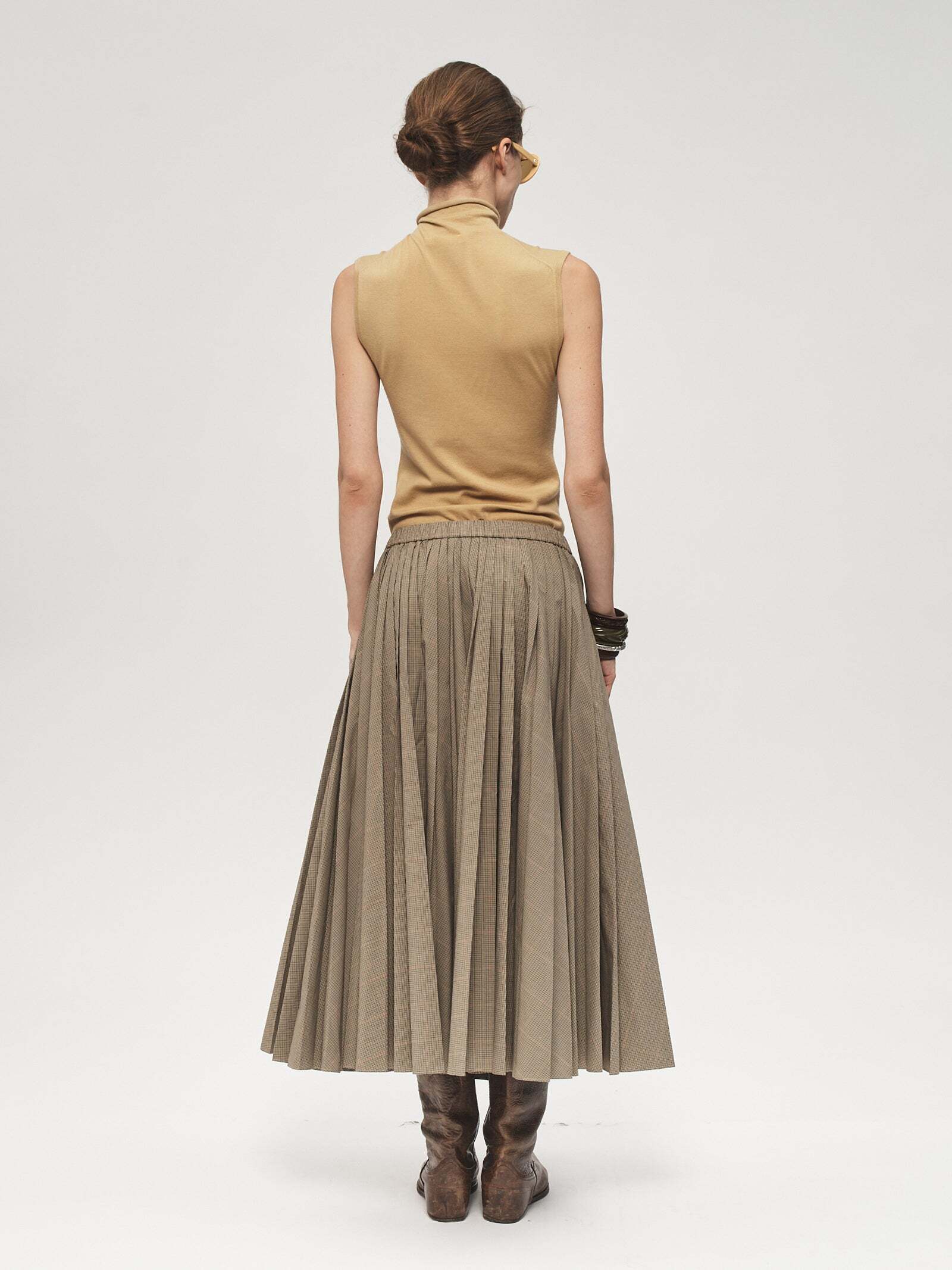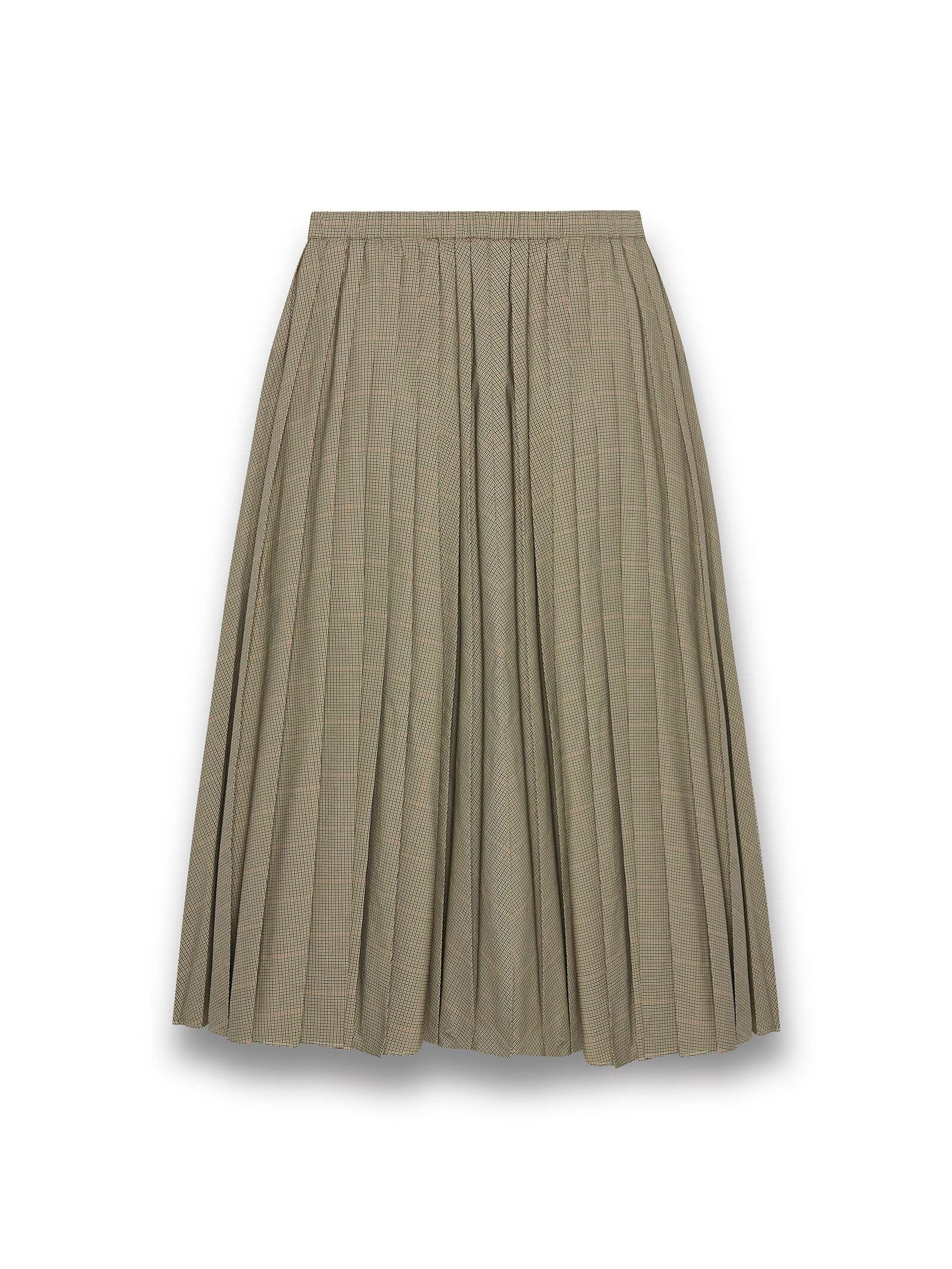 細かなマイクロチェック柄に全体に施したナイフプリーツが美しい立体感と軽やかな動きを演出します