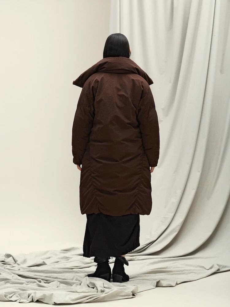ANGGAE HIGH COLLAR LONG DOWN BROWN